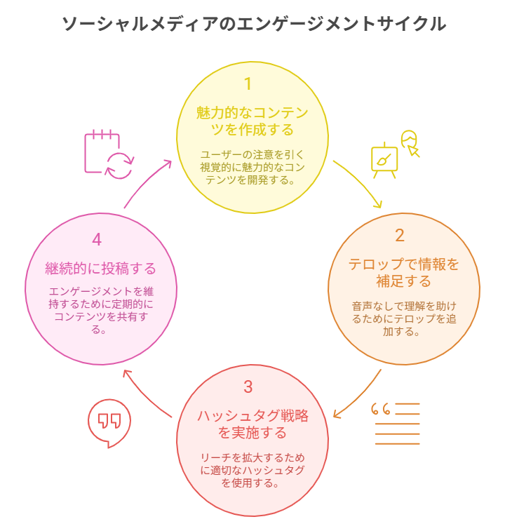 投稿内容、時間帯、ハッシュタグを変えながらPDCAサイクルを回し、パフォーマンスを継続的に向上させましょう。